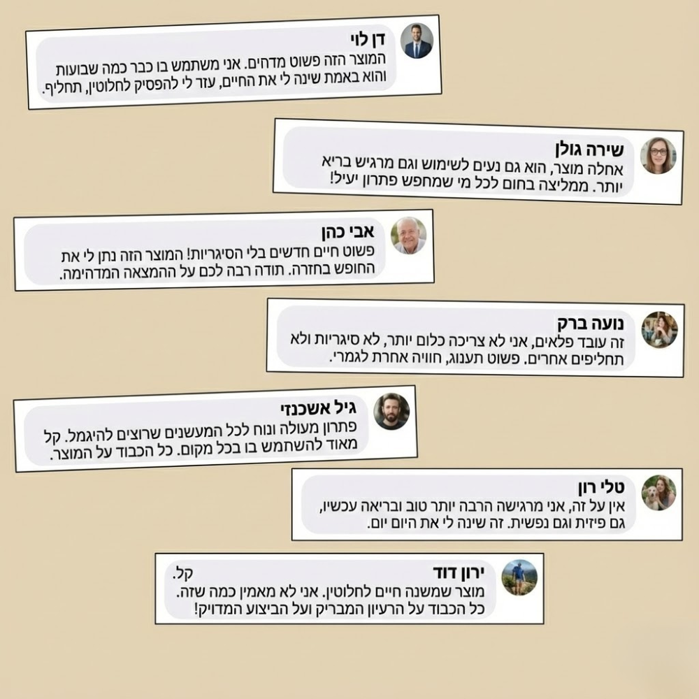 בבדיקה פנימית שערכנו 9 מתוך 10 משתמשים דיווחו על שינוי אמיתי כבר בשבועיים הראשונים.